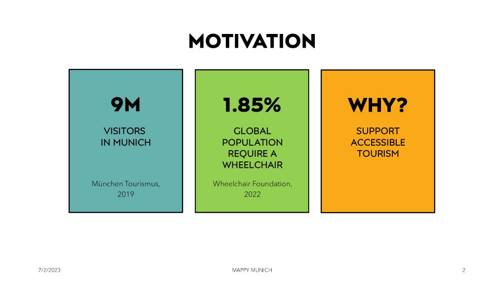 Mappy Munich is an online guide for tourists with limited mobility, that provides accessibility information for essential amenities and tourist attractions in the city center of Munich through interactive web maps.